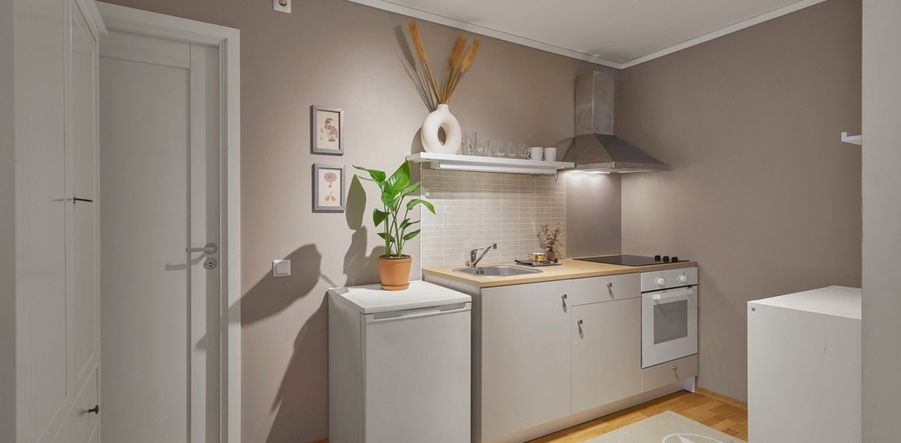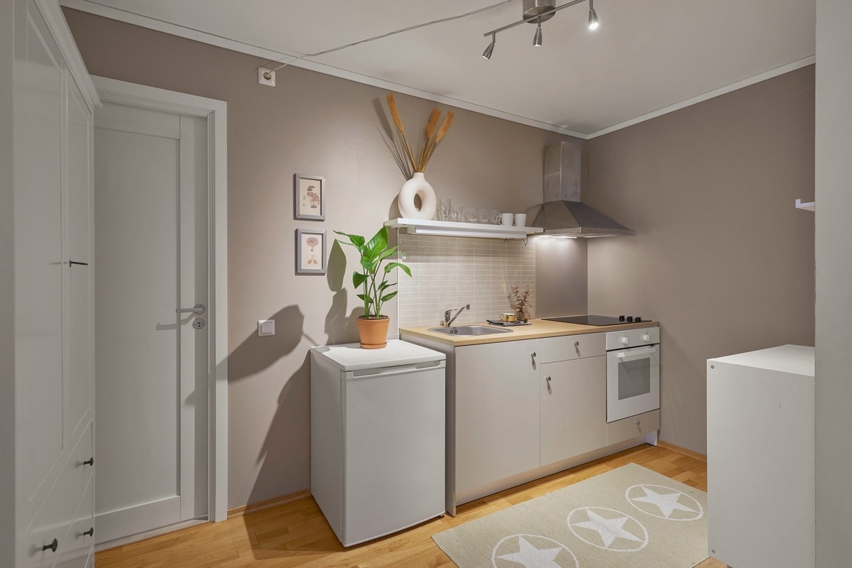 - Kombinert stue/soverom med kjøkkenløsning