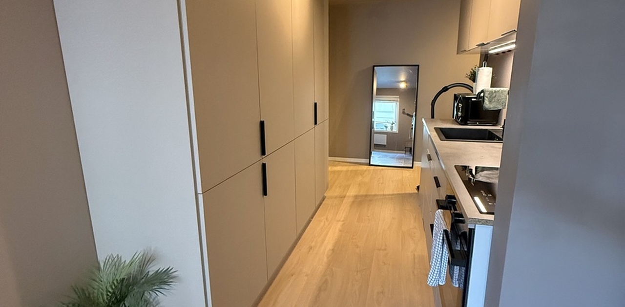 Leiligheten ligger svært sentralt, kun 10 minutters gange til sentrum. Det er 5 minutters gange til buss, matbutikk og treningssenter, og fine turmuligheter i nærheten.