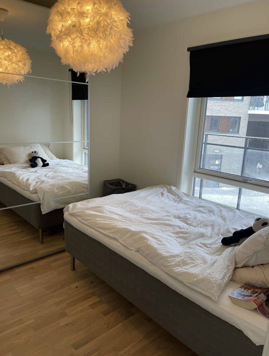 Leier ut ett rom i en leilighet på Ensjø! Det er ett fint og rolig nabolag. Leier ut fra 12.06.2026 - 16.08.2026 (Det er mulig å avtale leie noen dager/uker før og/eller etter denne perioden😊). Bor sammen med en venninne som kommer til å bo her i denne perioden. Leiligheten er ca 59m^2 og soverommet er ca 8m^2 det er en koselig stue med Tv, et kjøkken, bad, gang og veranda, det følger også med to boder en i leiligheten. På toppen av leiligheten er det også en takterrasse som har stor plass, mange sitteplasser og to solsenger. Alle t-banene (untatt linje 5) går gjennom ensjø t-banestasjon, t-bane 5 vestli går gjennom Hasle t-bane stasjon som er like ved, og buss 21 tjuvholmen og helsfyr går her. Send gjerne melding for flere bilder/ dersom du lurer på noe.🥰