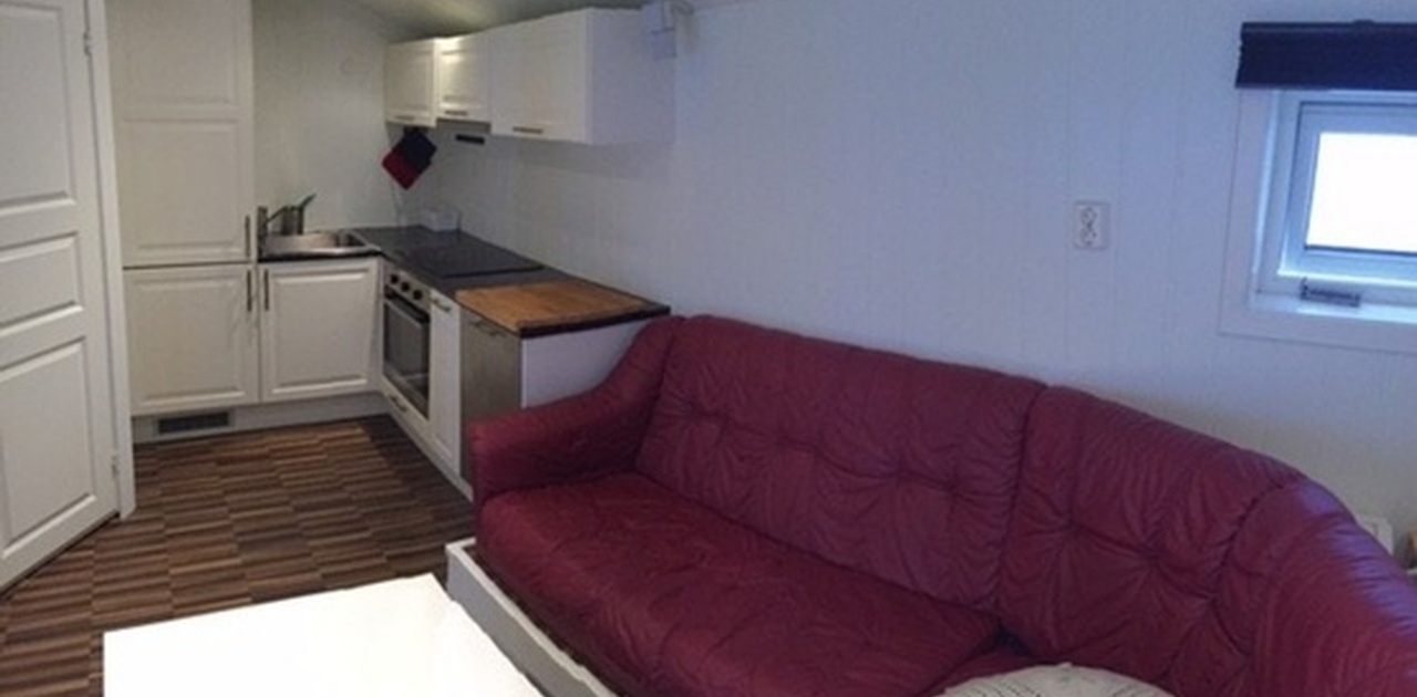 Hybelen har en moderne stil med alle hvitevarer integrert, oppvaskmaskin, komfyr, platetopp og kjøl/frys skap. I tillegg har man mye skapplass.