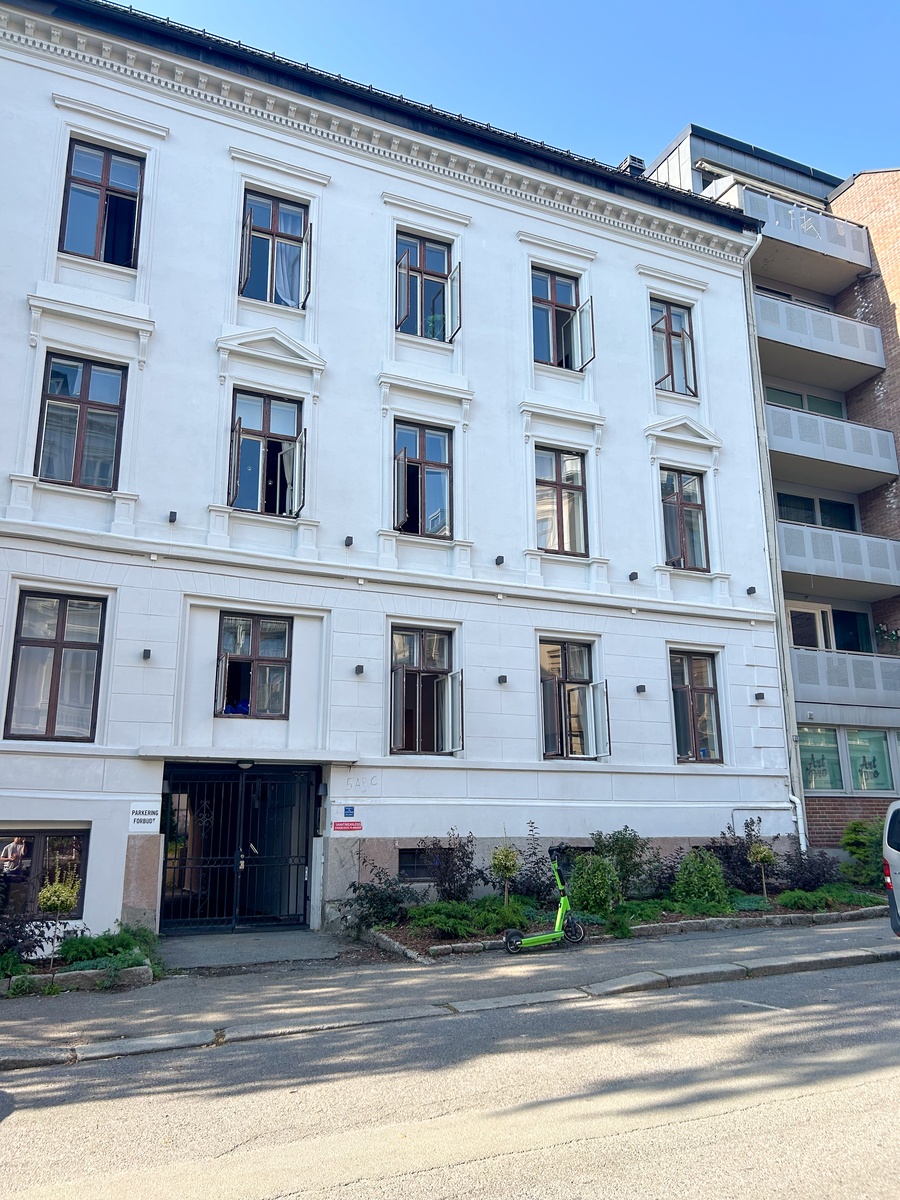 Leiligheten er plassert en 2 minutters gåtur fra Solli plass. Her er det enkelt å komme seg rundt. Tross den sentrale plasseringen er det et relativt rolig område. Men det bor flere unge voksne i bygget, så det hender at det er fest i bygget om helgene.