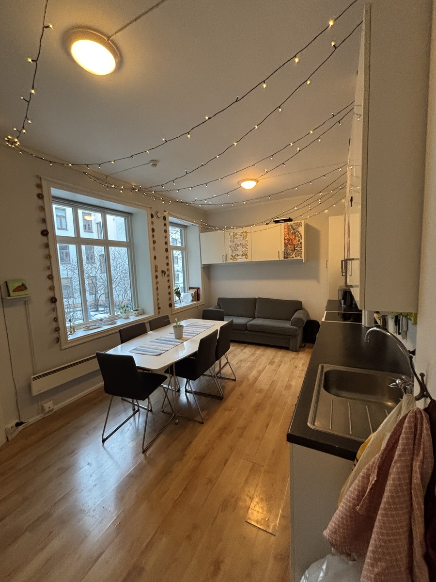 Jeg leier ut rommet mitt i byen koseligste kollektiv pga. flytting til egen leilighet. Rommet er på ca. 10kvm med god plass til dobbeltseng, pult, skap og andre møbler.
