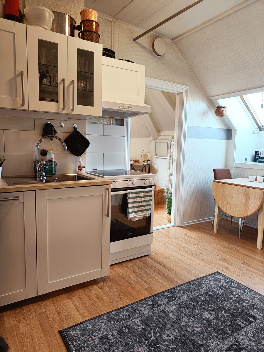 Sjarmerende 2-roms loftsleilighet særdeles sentralt ledig fra 1. juli. Leiligheten inneholder bad, kjøkken, et romslig soverom og stue. Leiligheten egner seg godt for et par eller en enslig som ønsker å bo veldig sentralt.