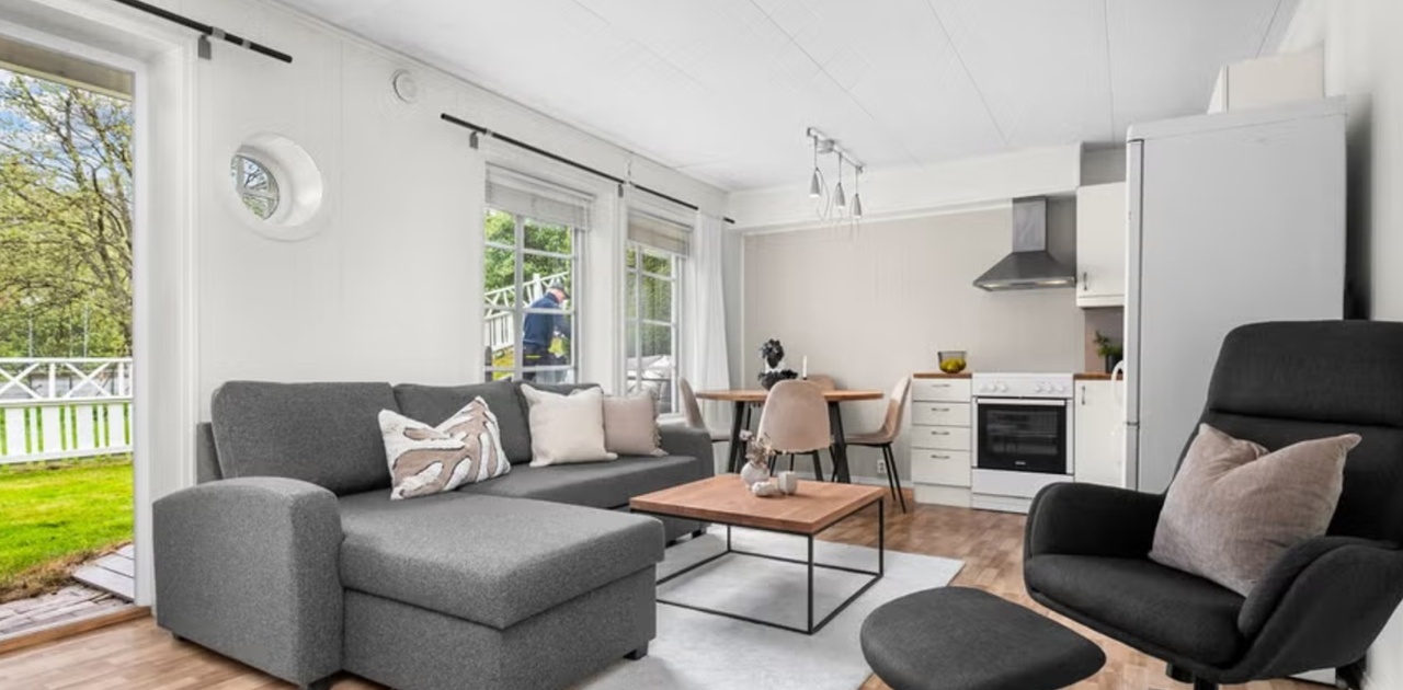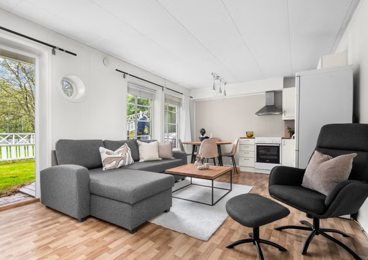 Stue og kjøkken i åpen løsning