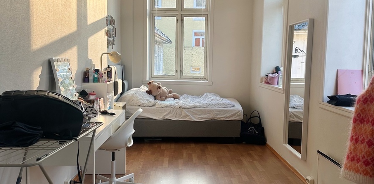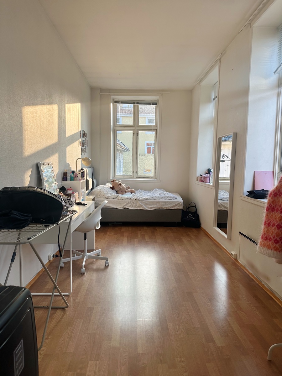 Hei! Jeg skal flytte ut med et par studievenninner til høsten, og leter etter noen som kan ta over min kontrakt (langtidsleie). Rommet er stort og er delvis møblert, kun med garderobeskap. Alternativt kan man kjøpe pult, lampe osv fra meg, men i utgangspunktet er rommet kun møblert med garderobeskap. Fordelen med rommet er at den har fire svære vinduer som gir god belysning.