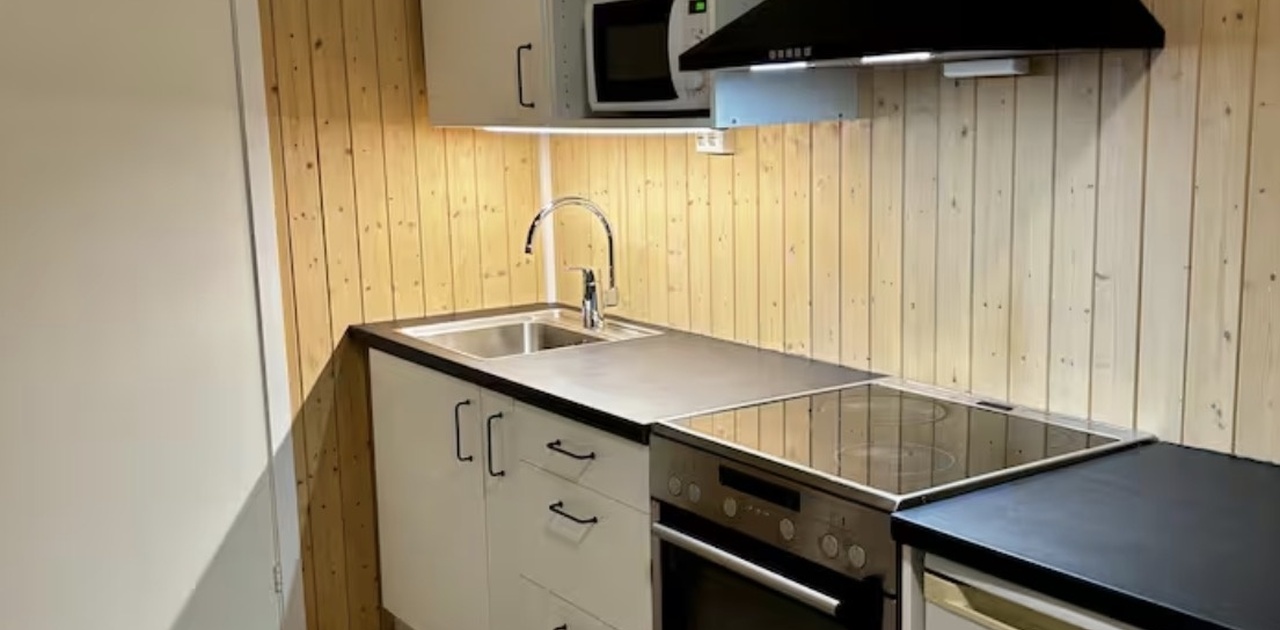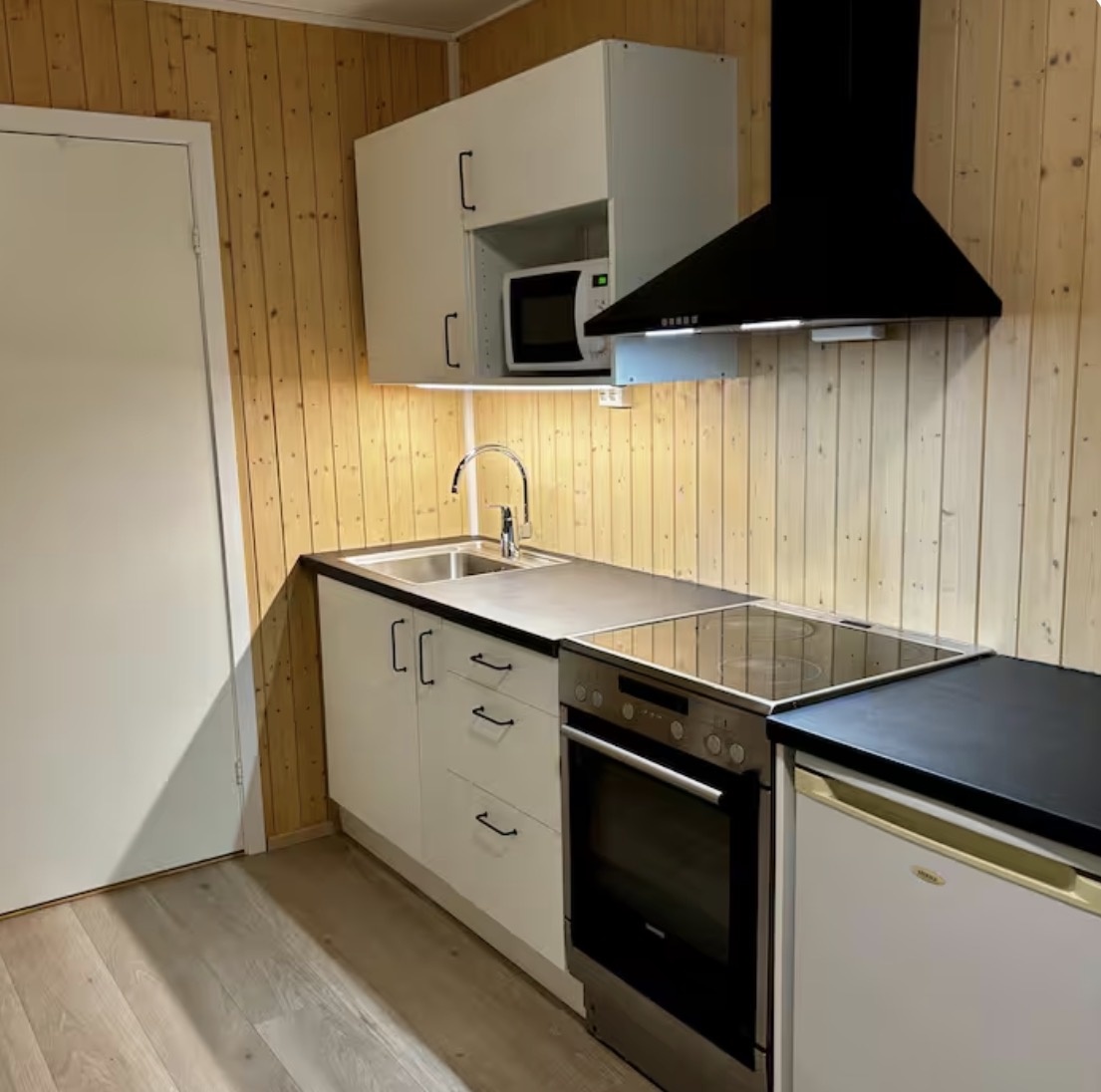 Leilighet på 25 kvm med egen inngang, godt utstyrt kjøkken, kjøl/frys. Sovesofa av god kvalitet, 150 cm når utslått. God å sove i. Parkering med mulighet for lading av el-bil. Fullt møblert. Stort bad med badekar, dusj, vaskemaskin og sauna. Stor privat sørvendt markterrasse utenfor inngangen. Strøm og internett inkludert. TV med Google TV. Kortids- eller langtidsleie.