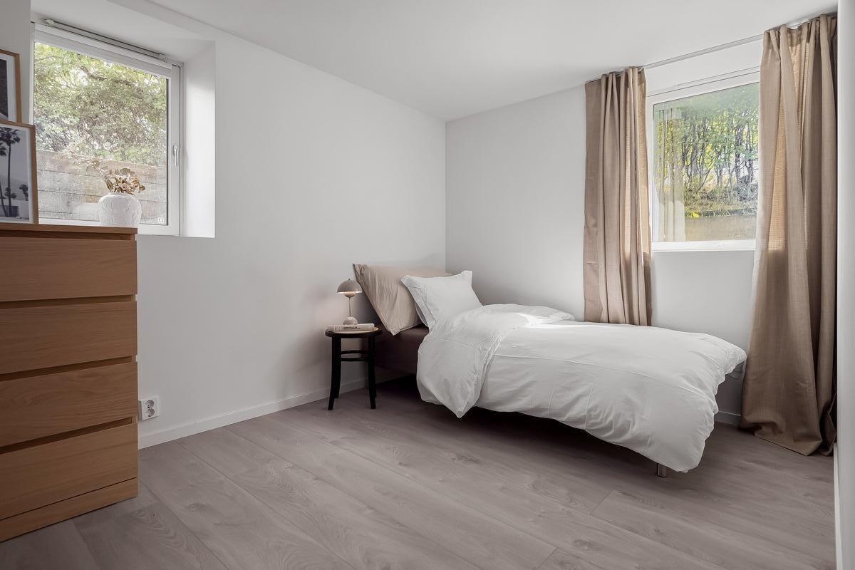 The apartment has three bedrooms. One of the bedrooms is available for rent because the current tenant is going on an exchange semester. Two friendly 22-year-old female engineering students currently live in the apartment. The bedroom for rent is spacious and bright, with two large windows and no direct view from neighbors.