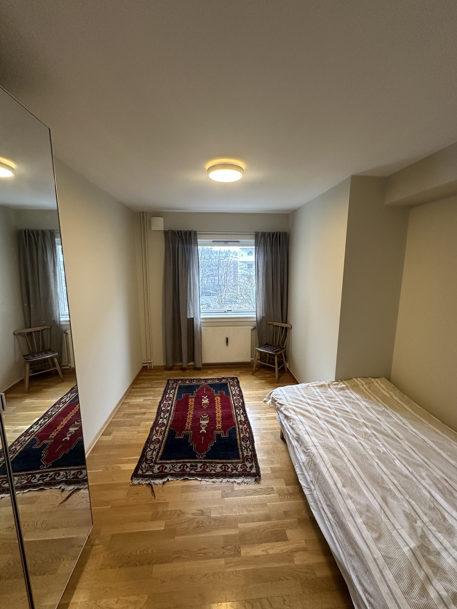 Both rooms are furnished with a wardrobe and a 120 cm bed, and the price includes electricity, heating, and hot water. Both bedrooms and the bathroom is freshly renovated!
