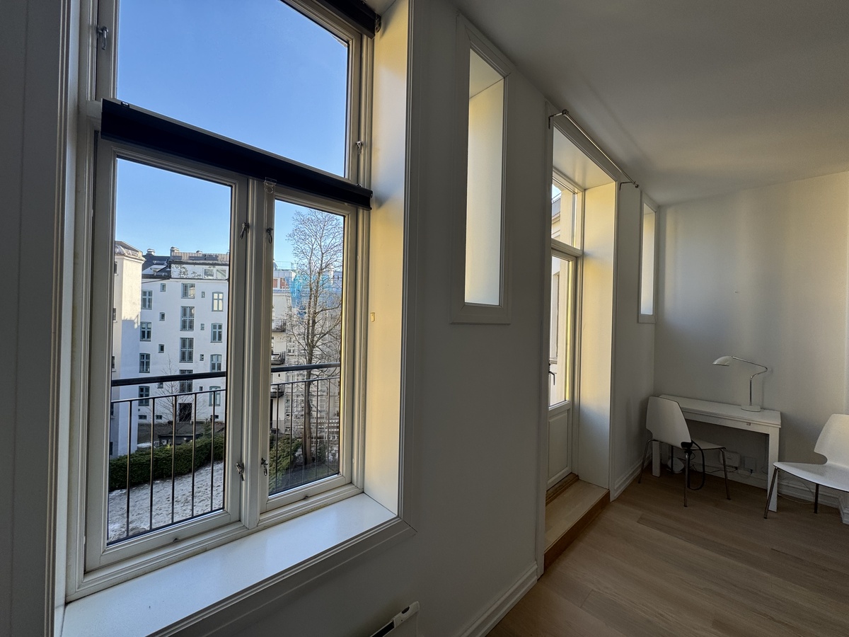 Lys og fin ettroms på Frogner, med flott bakgård, høy standard, hvitevarer og vaskemaskin inkludert. Sentral beliggenhet med kort avstand til kollektivtransport, matbutikk, koselige cafeer og restauranter og nær Frognerparken. Solfylt balkong med utsikt til skjermet bakgård.