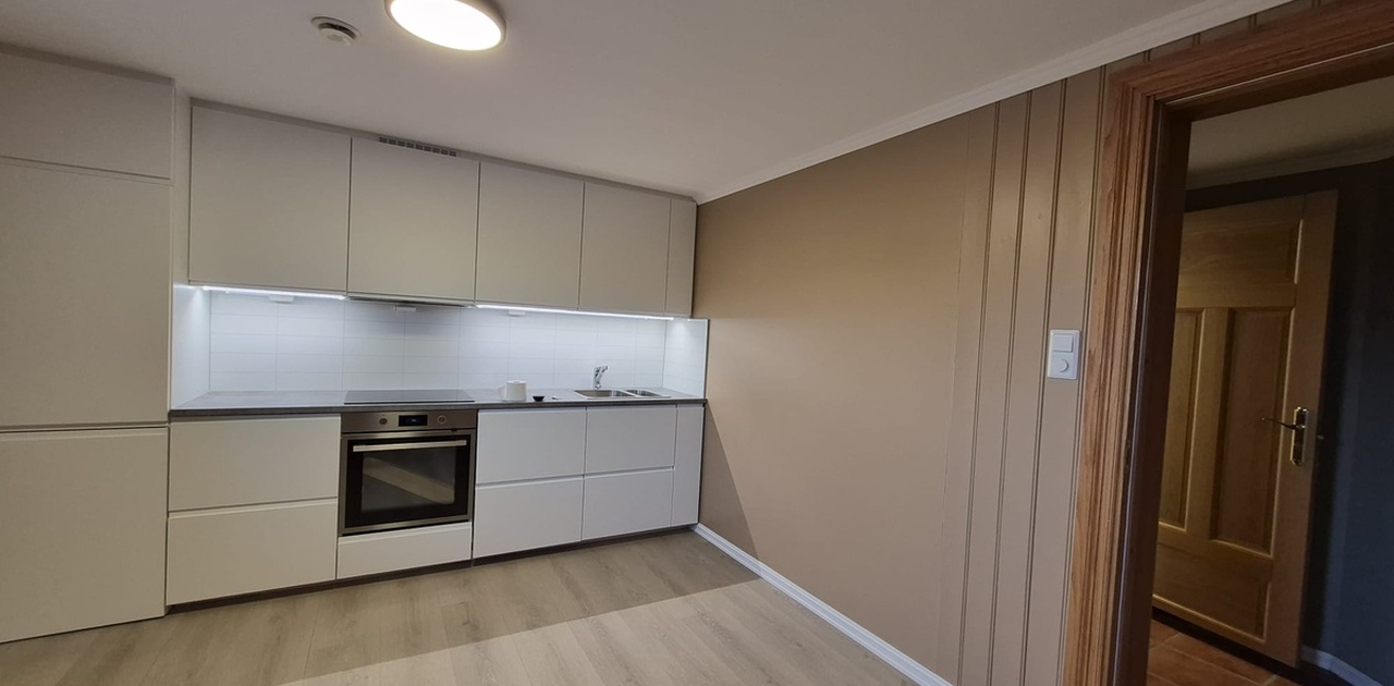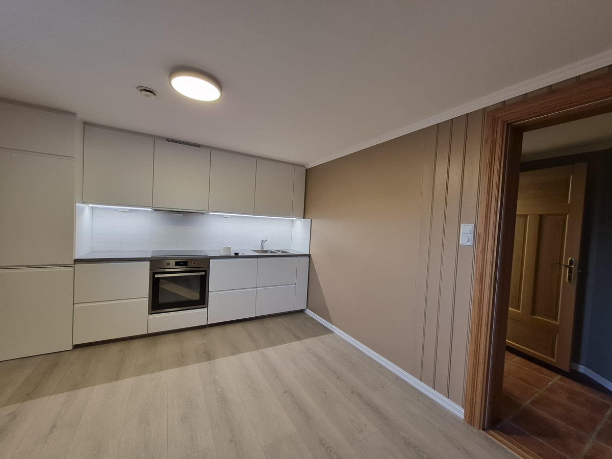 Nyoppusset/oppført hybel i underetasjen av enebolig. Egen inngang og ingen gjenboere. Flislagt gang/vindfang, sovealkove, stue/kjøkken og bad med opplegg for vaskemaskin. Det er plass til flere skap ved siden av det grå skapet hvis ønskelig, kommer an på størrelse på seng. Vannbåren varme i gulvene er inkludert. Varmekabler på bad. Strøm er ikke inkludert, men avregnes månedlig via seriemåler. Bredbånd er inkludert i leien. Plen på utsiden av hybel til disposisjon om sommeren. Parkering til 1 bil.