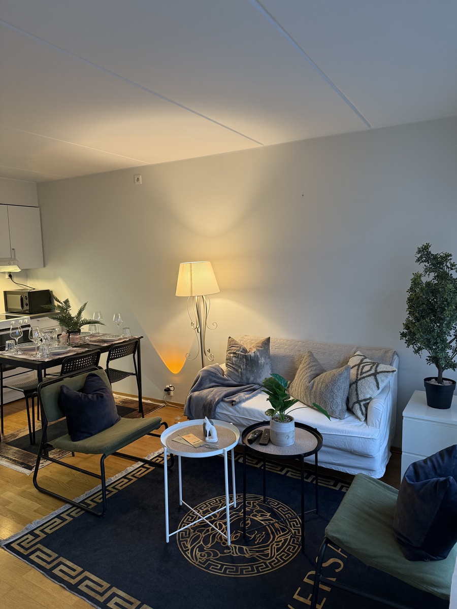 Experience elevated city living in this beautifully appointed top-floor one-bedroom residence in the heart of Oslo. Designed for comfort, convenience, and understated luxury, the apartment accommodates up to four guests and features a serene separate bedroom with a plush double bed. The elegant living area is furnished with inviting sofas and offers space for up to two roll-away beds upon request.