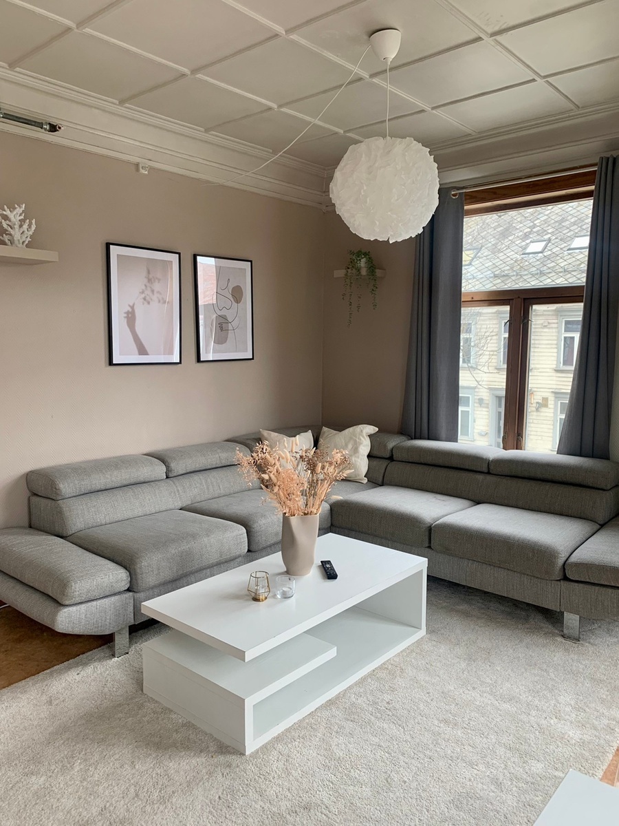 Dette er leiligheten for deg som liker lyst og romslig fellesareal. Til sammen er leiligheten på omtrent 50kvm. Leiligheten har store vinduer som gir mye fint dagslys, romslig kjøkken og sofa med plass til å strekke seg skikkelig ut, eller ha besøk av fler. Selvom soverommet i som leies ut kan oppleves lite, er det skapplass i gangen, og mulighet for oppbevaring i fellesarealet.