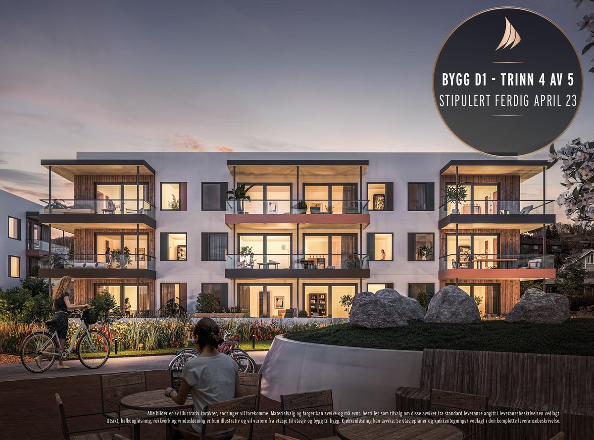 Det er blant annet møblert med Cosima sofa fra Bolia, DiCaprio TV-benk fra Bolia, ny TV, spisebord med stoler mv. Soverommene er umøblert.