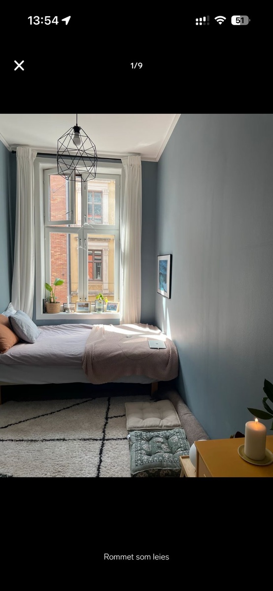 Rommet som leies ut er ett av tre soverom i et veldig koselig og nyoppusset kollektiv. Rommet er på 12m2. Det er fint, lyst og høyt under taket. Also, I am selling all the furniture in the bedroom for 2000 nok (new bed, new lamp, mirror, two drawers and bedside table, clothes hanger).