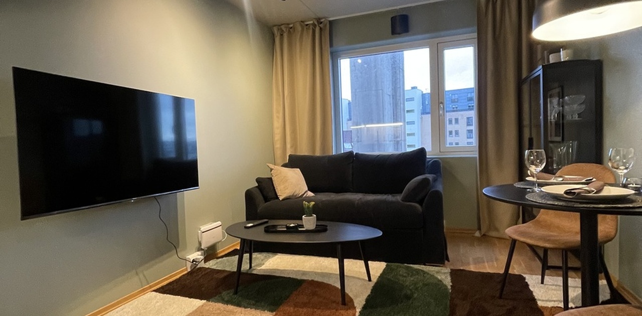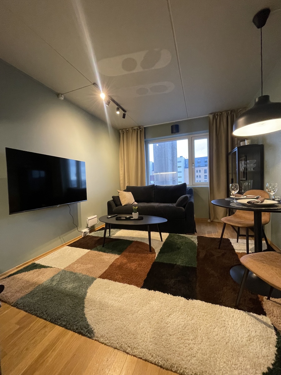 Fully furnished studio apartment in Stavanger city centre with sea view and shared roof terrace.