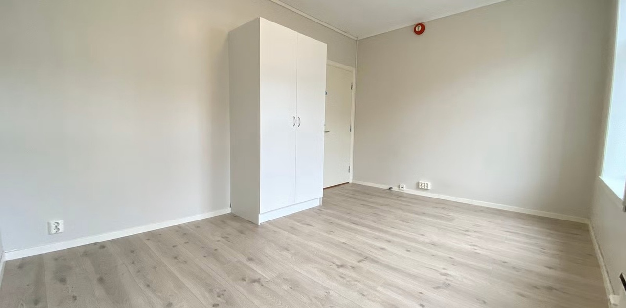 I tillegg til alt av fellesareal, er selve rommet ca. 13 kvadratmeter stort. Rommet er umøblert, men det er et garderobeskap etterlatt av tidligere beboer. De tre rommene deler gang, kjøkken, to toalett, samt et bad med dusj og vaskemaskin og tørketrommel. Kjøkkenet er møblert med bord/stoler, oppvaskmaskin, 2 kombiskap, komfyr, samt grunnleggende kjøkkenartikler.