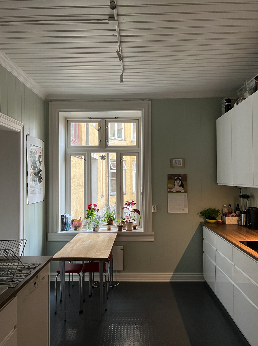 Vi har stor stue og kjøkken som kan brukes til alt fra felles middager til filmkvelder. Her skal det føles som et hjem og ikke bare et sted man bor. Det er viktig for oss å ha det ryddig med en viss ro i hverdagen. Så det er ikke noe festkollektiv, men vi er åpne for å kunne invitere venner for å feire bursdag og lignende.