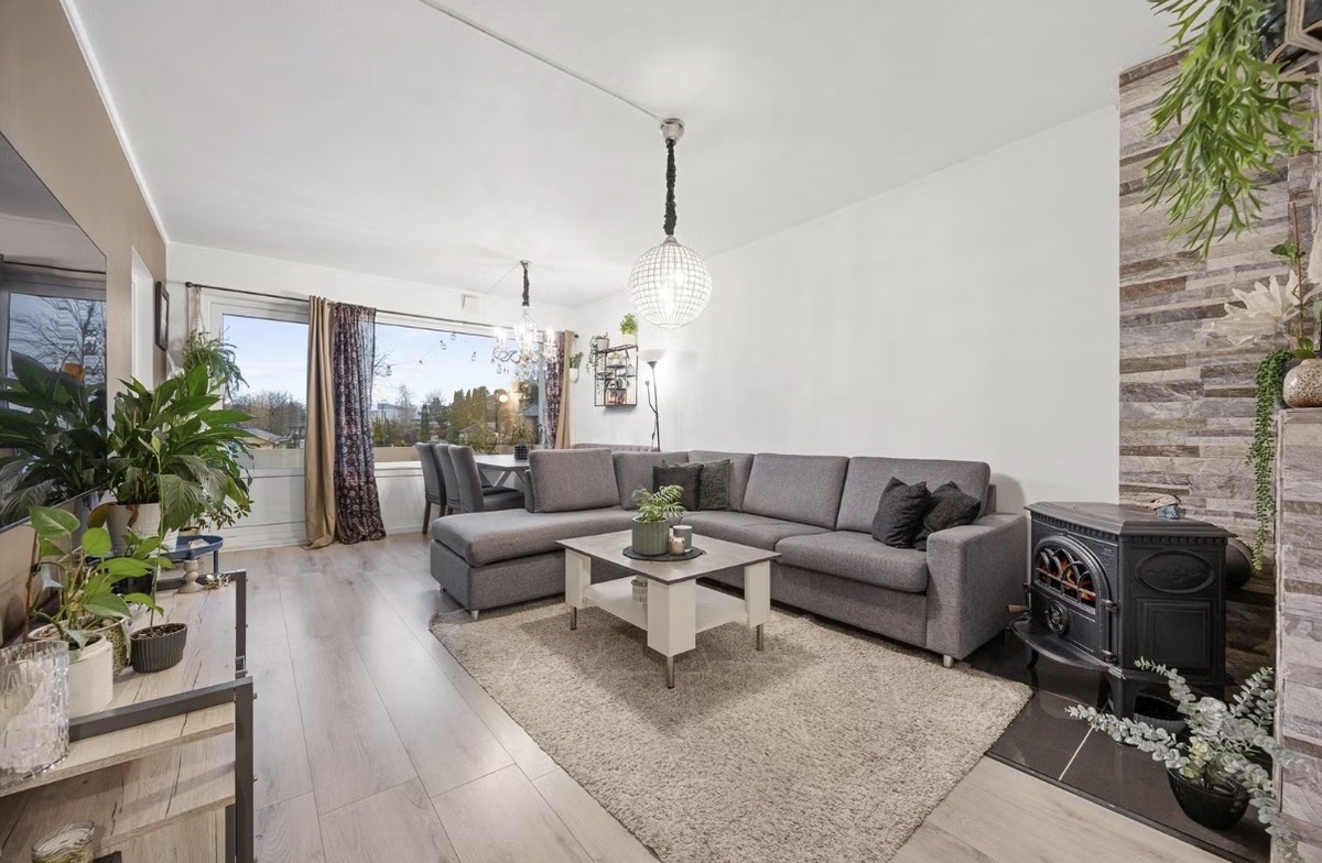 Pen og arealeffektiv 3-roms | 2 soverom | Balkong | Peis | Parkeringsplass | 8 min til Lørenskog stasjon