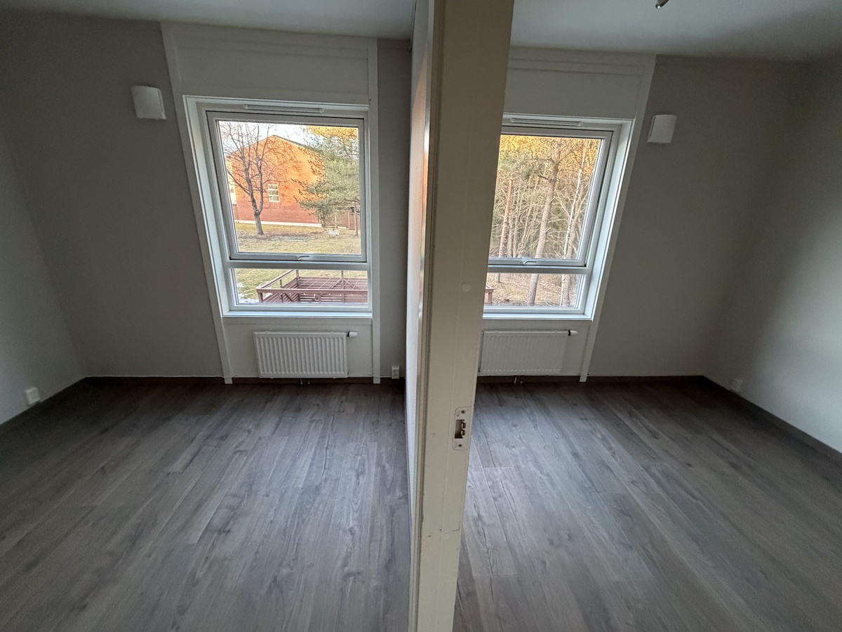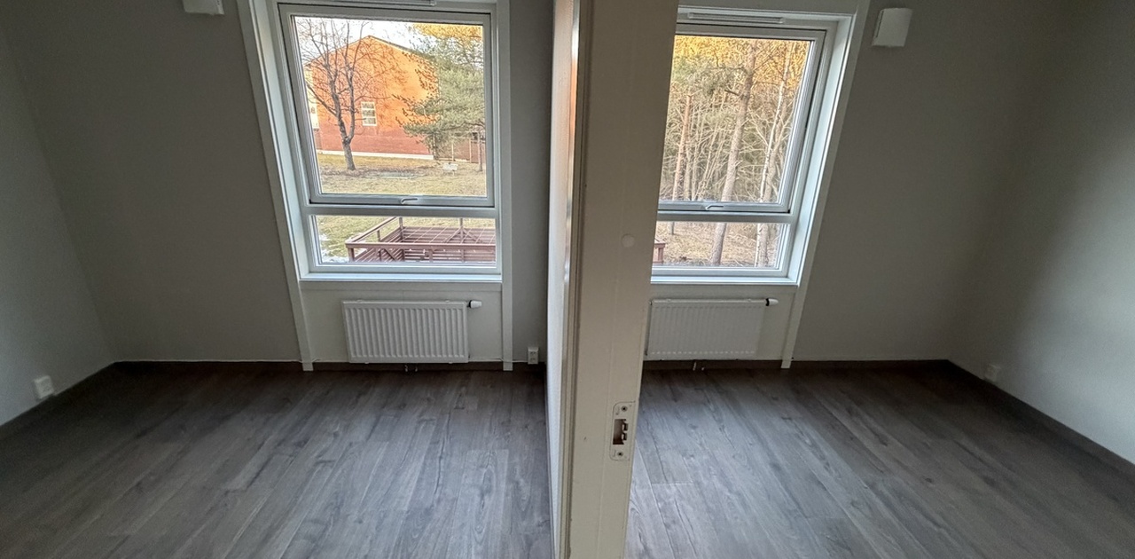 Jeg leier ut 2 rom i min leilighet, hvor det ene rommet er tenkt som soverom og det andre som stue/oppholdsrom, begge med fin utsikt til hagen.