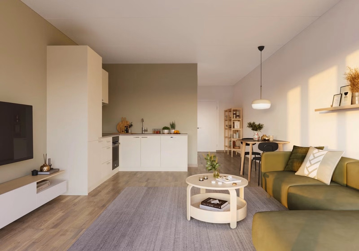 Bilder og illustrasjoner som er brukt i annonsen er fra flere ulike leilighetstyper i prosjektet. Materialer, inventar og fargevalg kan avvike.