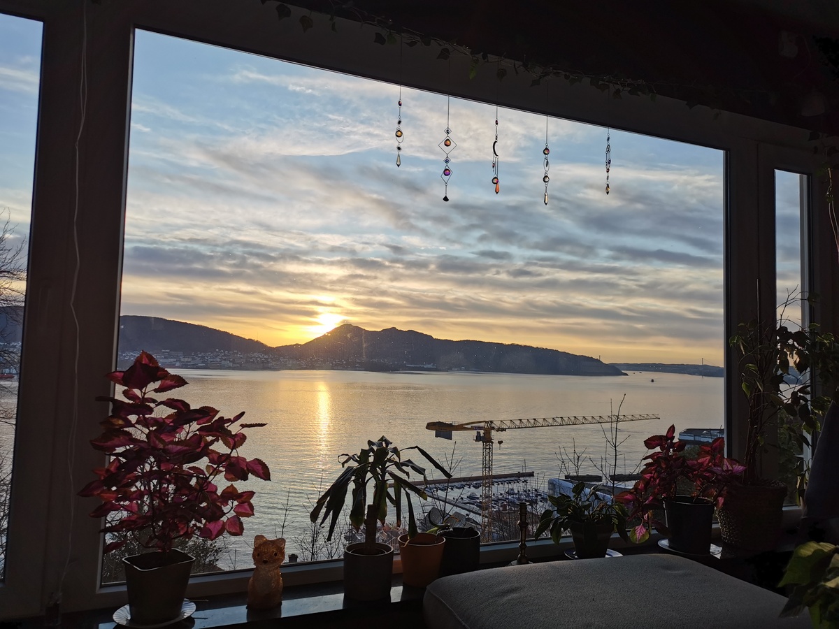 My room with a great view on the fjord an international collective at Munkeboten will be free from 16. April. The room (ca. 7.5 m^2) is in a nice, big apartment in a great location and with an amazing view also from the living room and private terrace. There are currently 6 roommates in their mid/late 20s -30s who study and work.