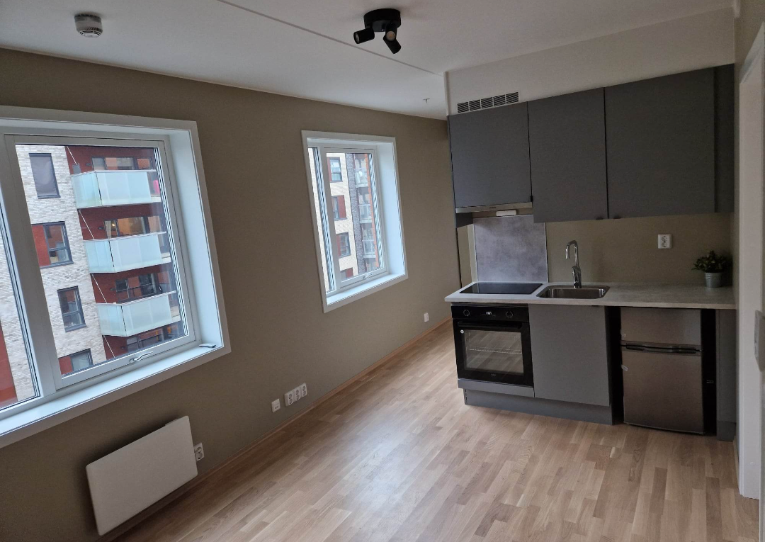 Leilighet på 23 kvm leies ut til rolig leieboer. Egen inngang fra fellesgang, egen dørcalling og postkasse, lydisolert dør og brannvegg. Elektrisk solskjerming på vinduene.