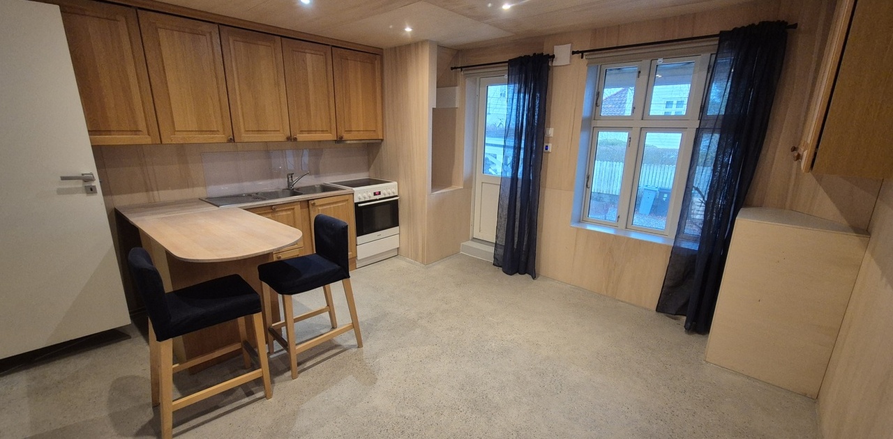 Vi leier ut en hybel. Perfekt for enslig eller par. Oppvarmet med varmekabler. Kjøleskap, oppvaskemaskin, vask/tørkemaskin for klær og komfyr inkludert.