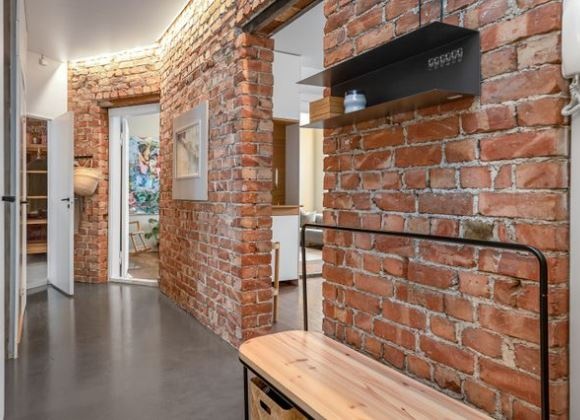 Gang: Lys og luftig gang som knytter leiligheten sammen med adgang til alle rom. Originalvegg. Malt vegg og himling, tidsriktig vinylflisgulv med varme, downlights. Plass til yttertøy og sko.