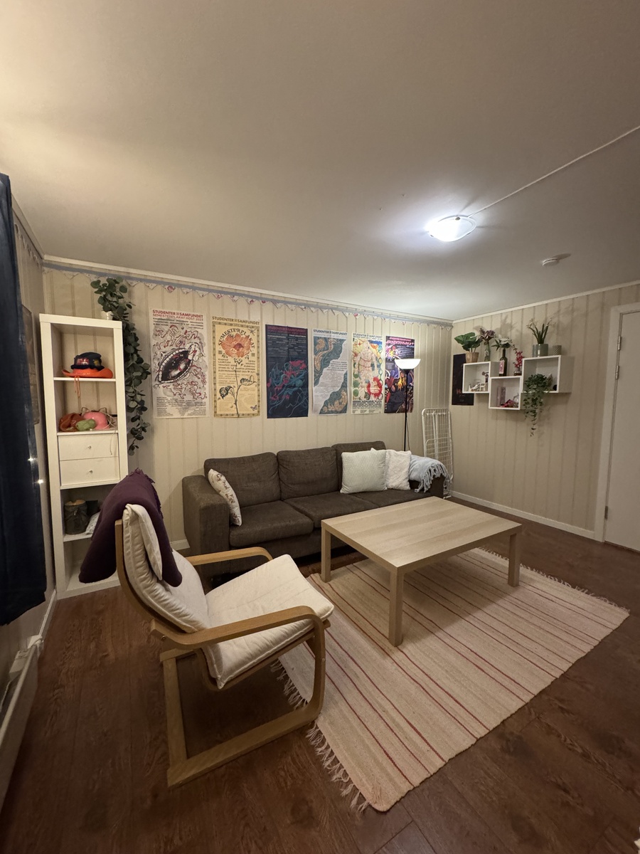 Vi er tre jenter som leier ut rommene våre når vi skal på utveksling høsten 2026. Vi har et nydelig kollektiv på Rosendal, med kort avstand til sentrum, buss og butikker. Stedet er møblert, og vi har verdens hyggeligste utleier. Leier gjerne ut til en gjeng på tre, men kan også leie ut rommene enkeltvis❤️ vi har og tilgang til hage med grill og lysthus