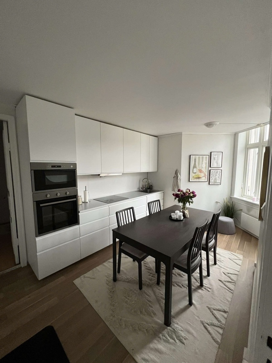 Om leiligheten og beliggenheten: Leiligheten ligger rolig til, men med gangavstand til det meste - kafeer, butikker, sentrum og alt Trondheim har å by på er rett utenfor døren. Vi har også en koselig bakgård med oppmerkede parkeringsplasser, og det er mulig å leie parkeringsplass for 500 kr per måned om du har bil.