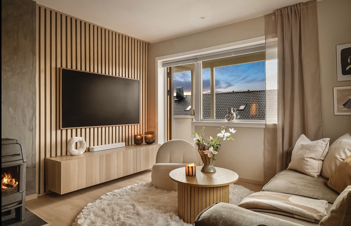 Boligen fremstår som moderne og innbydende, med gode lysforhold og en gjennomgående høy standard. Den har en romslig stue og fullt utstyrt kjøkken med oppvaskmaskin, samt et komfortabelt soverom med god skapplass.