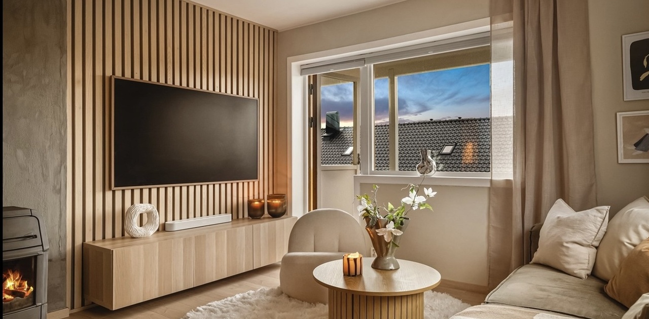 Et av høydepunktene er den store balkongen med gode solforhold og nydelig kveldssol som er perfekt for rolige sommerkvelder, middag ute eller bare å nyte utsikten.