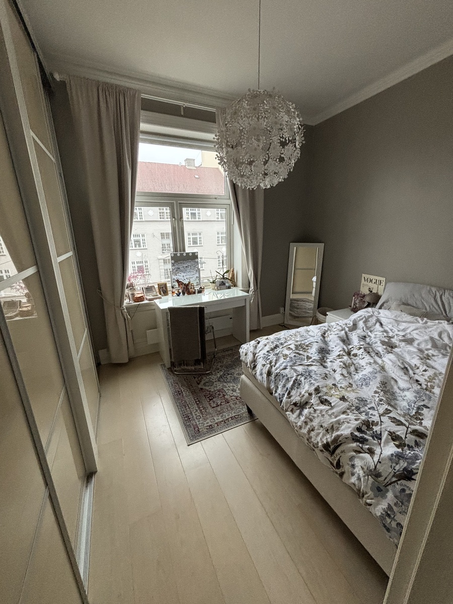 Stort og moderne rom i jentekollektiv sentralt på Majorstuen kommer til leie fra 1. mai. Leiligheten består av 4 soverom, der du vil bli boende med jevnaldrende (20-26 år). Felles kjøkken, bad og gang. Soverommet leies ut umøblert.
