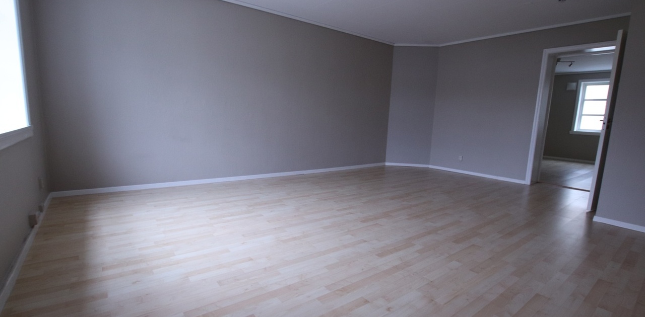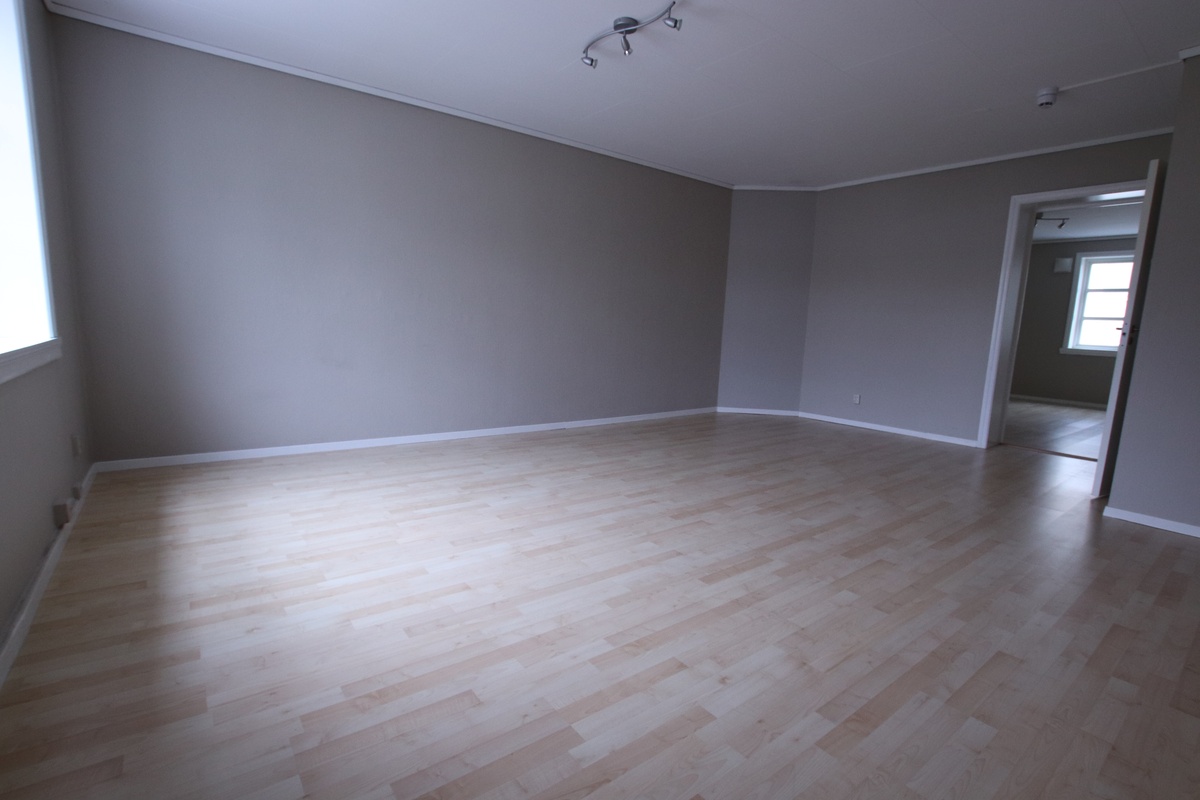 Leiligheten inneholder entré/gang, stor stue, stort kjøkken, 2 store soverom, samt helfliset bad m/WC.