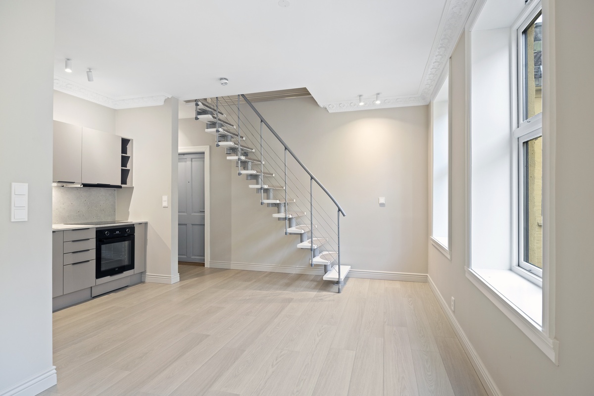 Lekker 3 roms leilighet over 2 etasjer. Med sine store vinduer, praktiske utforming og god romfordeling, tilbyr denne leiligheten den perfekte kombinasjonen av eleganse og funksjonalitet. God takhøyde med stukkatur.