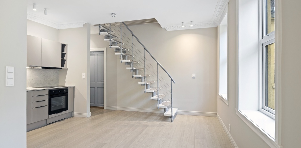 Nyoppusset 3-roms leilighet over 2 etasjer | Høy standard | Hvitevarer | Moderne | Stukkatur