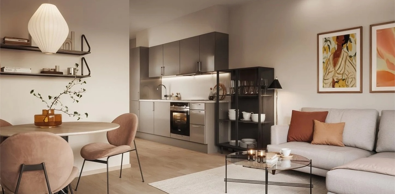 Splitter ny og lekker 2-roms selveid hjørneleilighet med oppgradert standard og flott utsikt | Balkong og heis
