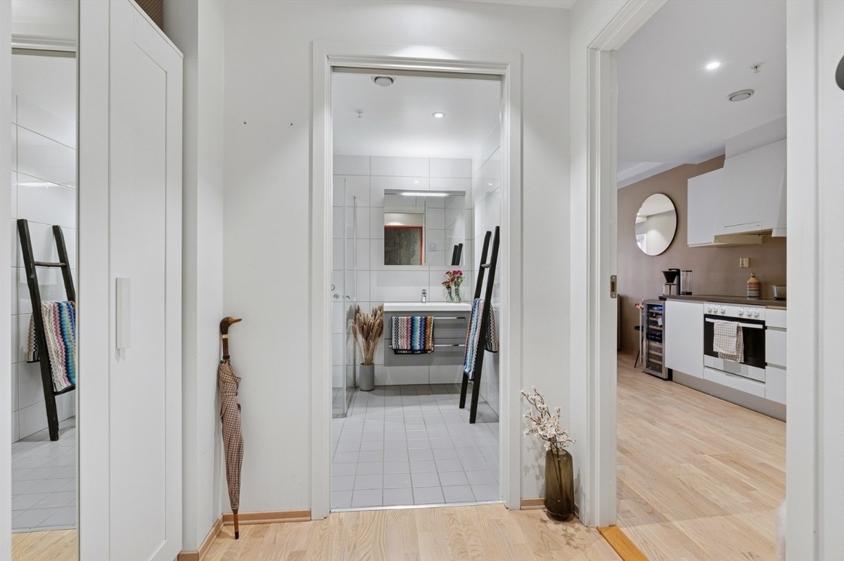 Leiligheten leies ut delvis møblert med garderobeskap i gang og på soverom + hvitevarer på kjøkken og bad. Bilder hentet fra Finn-annonse, med forbehold om at kun nevnte møbler følger med leiligheten.