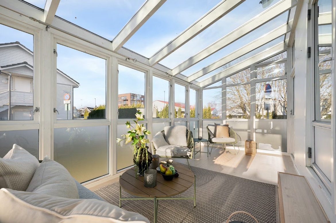 Leiligheten er lys og trivelig, og består av to soverom, stue, kjøkken, bad og en superkoselig vinterhage 🌿
