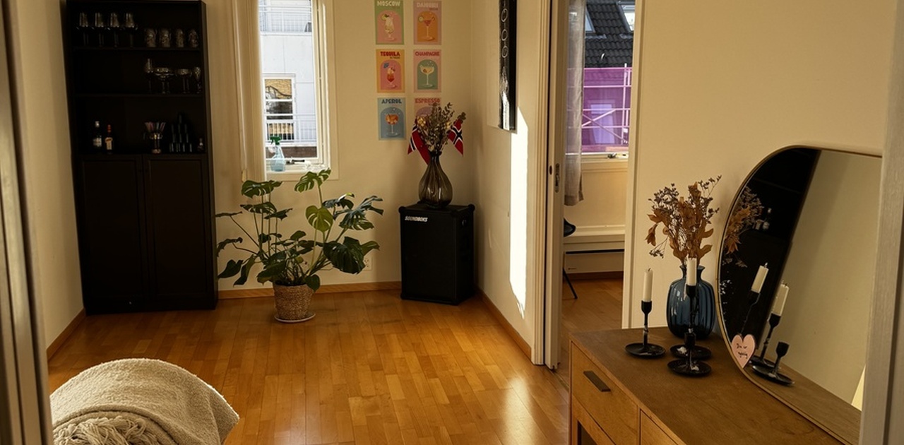 Vi er to jenter på 21/22 (04) som har bodd sammen i et kollektiv siden i høst og i juni overtar vi denne nydelige leiligheten i sentrum🤗