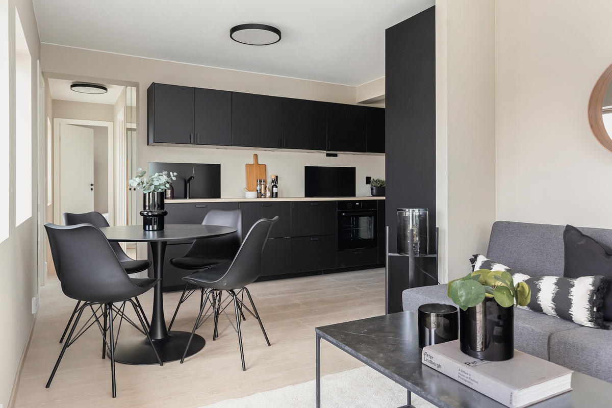 - Fellesarealer: Møblert med sofa, bord, spisebord og stoler.