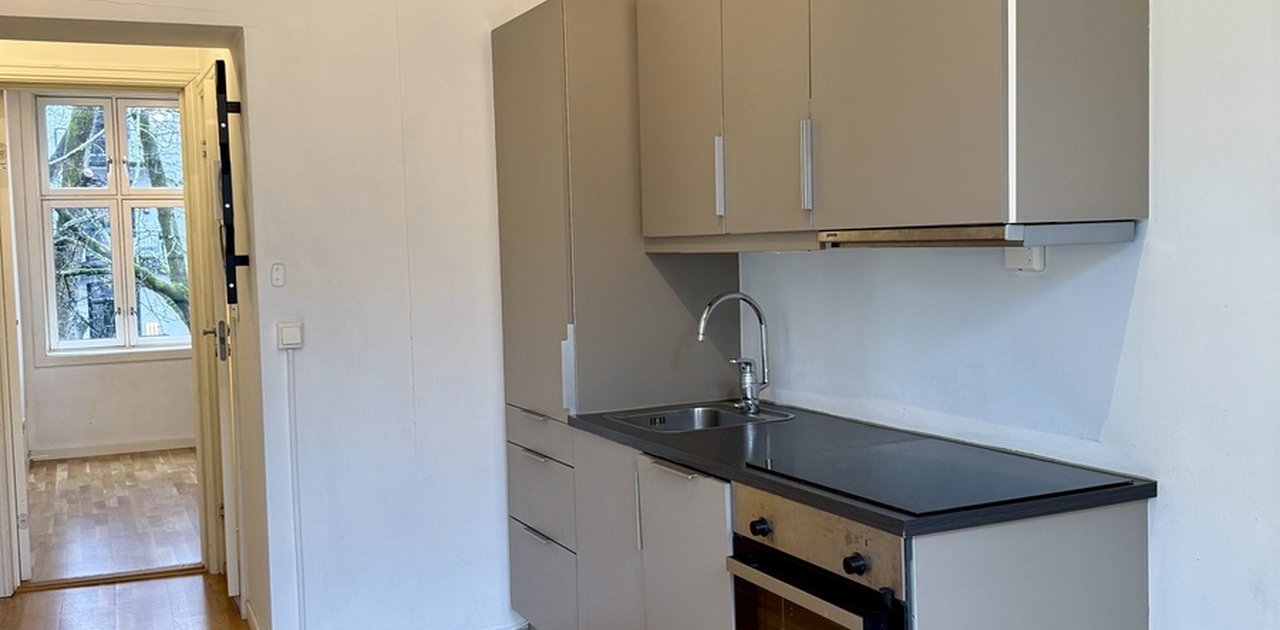 Stor og lys leilighet perfekt for en til to personer i rolig området på øvre løkka, Leiligheten innehar lyse overflater og god standard. Leiligheten har et soverom med en åpen kjøkken/stue løsning med integrerte hvitevarer. Flislagt bad med vegghengt toalett, dusjdører i glass.