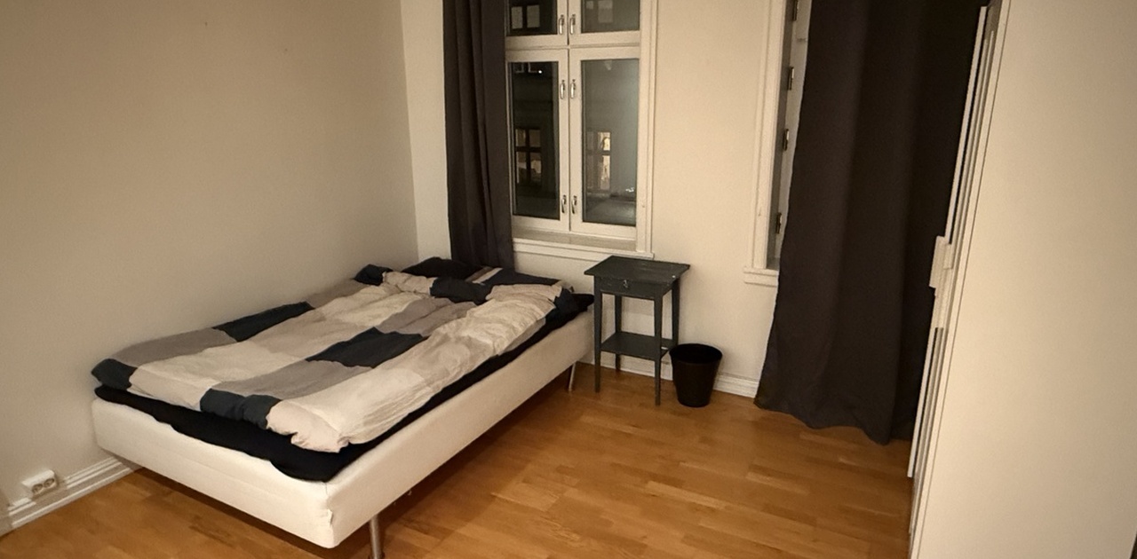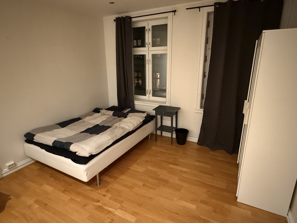 Med rommet følger det med en stor bod i kjelleren og sykkelparkering i bakgården.