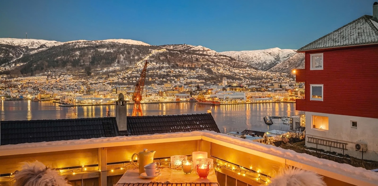 Er dere en gjeng som skal studere i Bergen, eller en familie som ønsker god plass i et rolig nabolag? Sjekk ut denne lyse leiligheten over 3 etasjer med 4 soverom og privat terrasse med helt fantastisk utsikt – som faktisk kan nytes fra alle soverom.