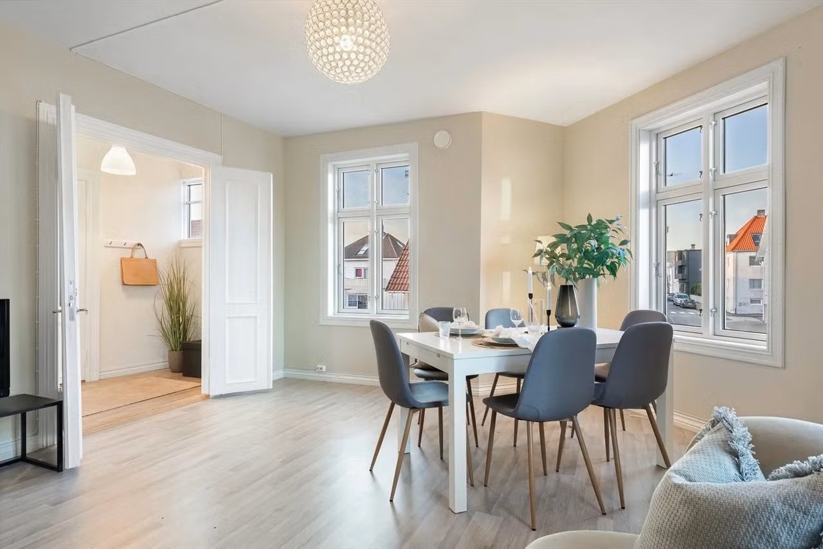 Lys og moderne leilighet med sentral beliggenhet på Paradis. Gangavstand til Stavanger sentrum, med umiddelbar nærhet til butikker, kafeer og kollektivtransport. Leiligheten er ledig fra 1. mai 2026. Ønsker langtidsleie.