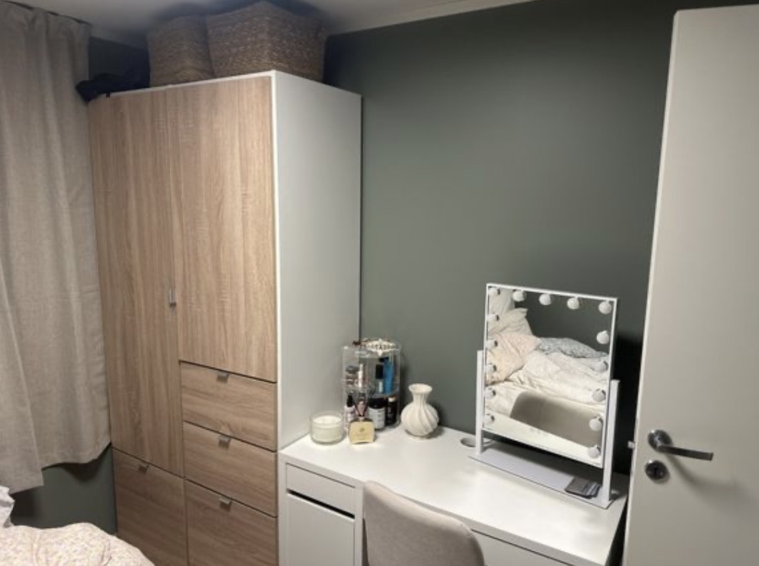 - Møblert med seng, garderobeskap og skrivebord