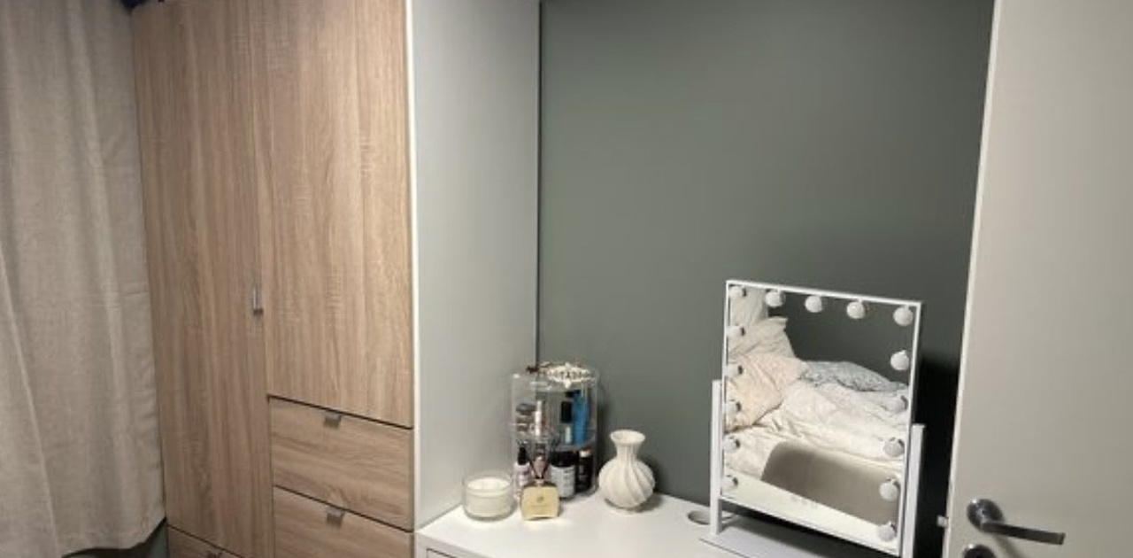 Du deler leiligheten med to rolige og hyggelige jenter som studerer ved universitetet. Passer best for en rolig og ryddig person.