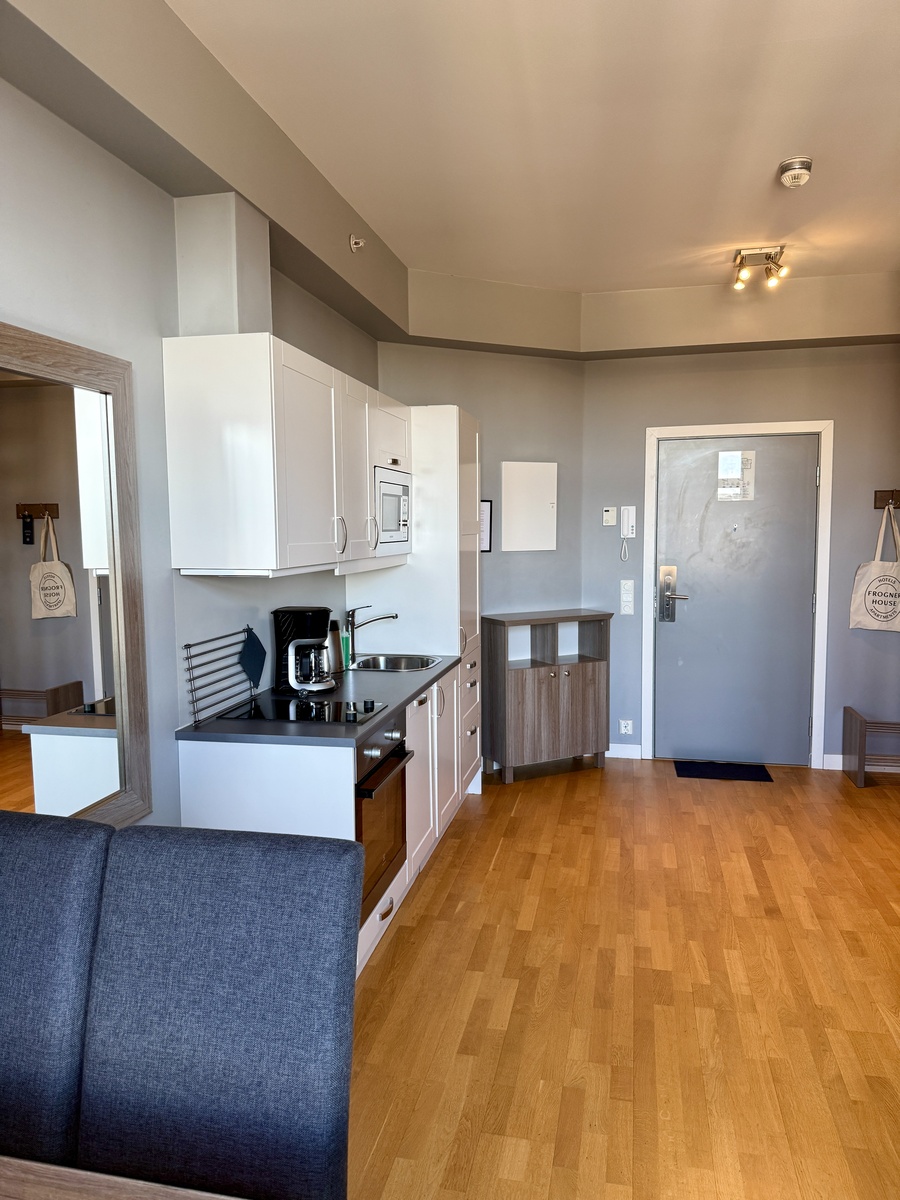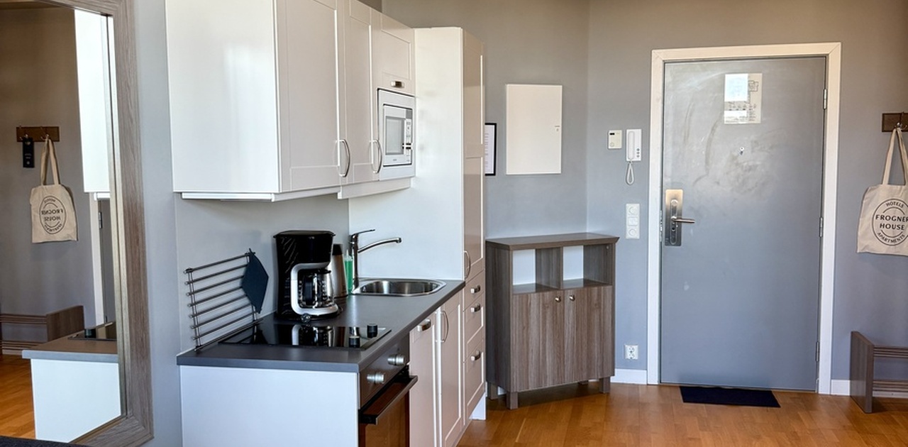 Leiligheten kan leies møblert. Kjøkkenhvitevarer som er integrert medfølger. Andre hvitevarer som måtte stå i leiligheten kan brukes av leietaker i leieforholdet, men byttes ikke ut av utleier dersom defekt.