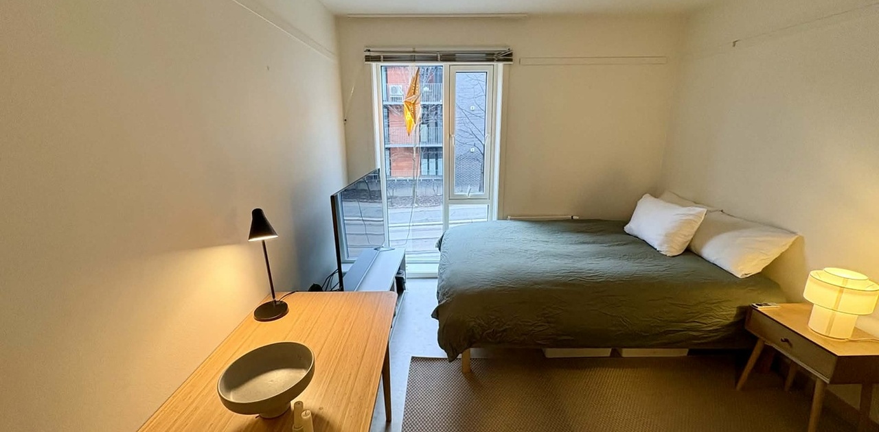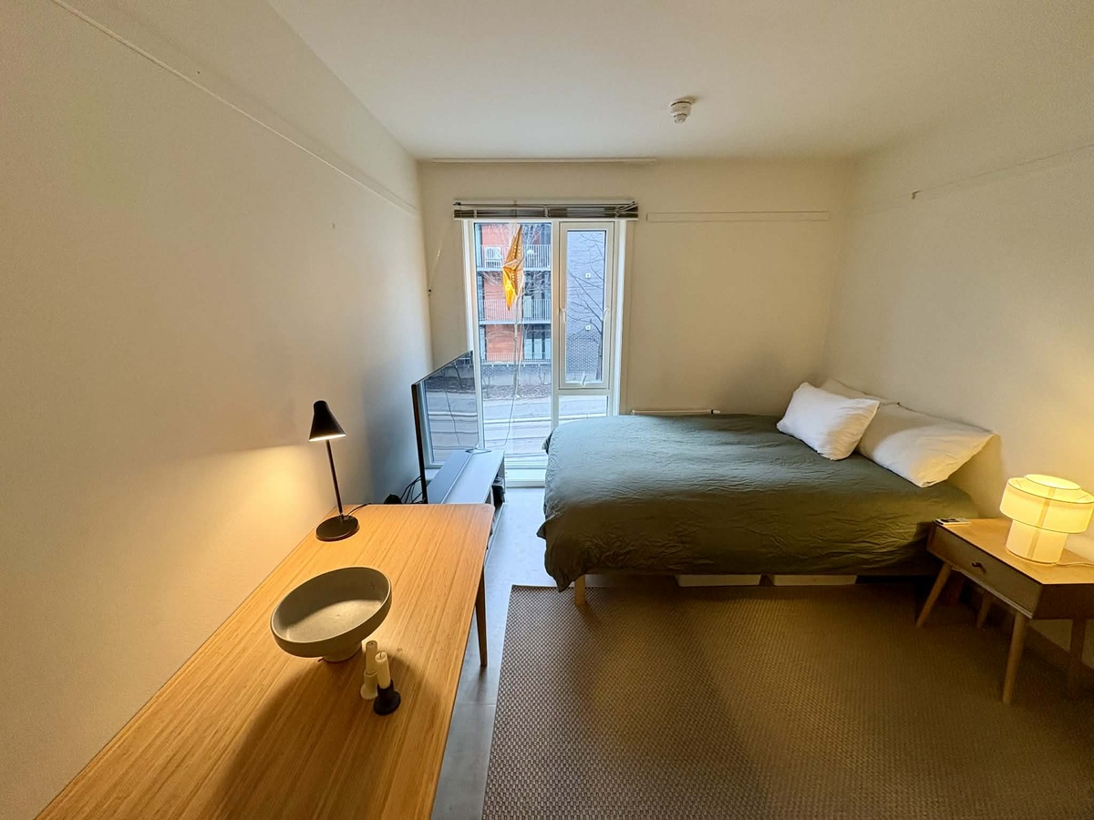 The apartment is 17 squaremeters and comes with a storage room in the basement of the building. It has its own bathroom with a washing machine and a fully equiped kitchen. It comes fully furnished with a desk, 140x200 bed and a TV with apple TV. Electricity, water and internet is all included in the rent.