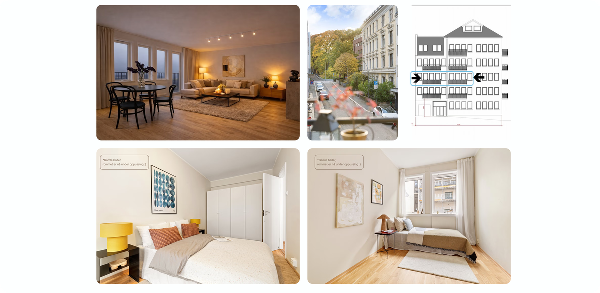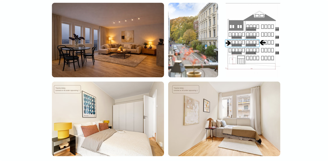 Jeg har akkurat overtatt leiligheten, og den er under oppussing. Har derfor lagt ved bilder av ny planløsning, samt bilder av soverom fra gammel annonse.